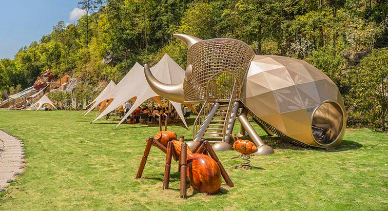 它適合安置在山野營(yíng)地、親子農(nóng)場(chǎng)、自然樂園等戶外場(chǎng)景,既能讓孩子在模擬昆蟲世界的探險(xiǎn)中釋放活力,也能憑借獨(dú)特的仿生造型成為場(chǎng)地的吸睛打卡點(diǎn)。