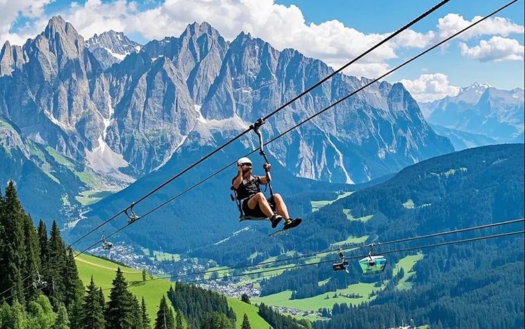 游客穿戴專業(yè)安全裝備后,從高處順勢滑行,可體驗御風(fēng)飛行的失重感與速度感,同時 360° 飽覽雪山群峰、層疊森林與山谷村落的全景,實現(xiàn) “刺激探險 + 極致觀景” 的雙重體驗。設(shè)備采用專業(yè)級耐磨鋼索、五點式安全帶與多重緩沖裝置,搭配定期安全檢測機(jī)制,全方位保障游玩安全。