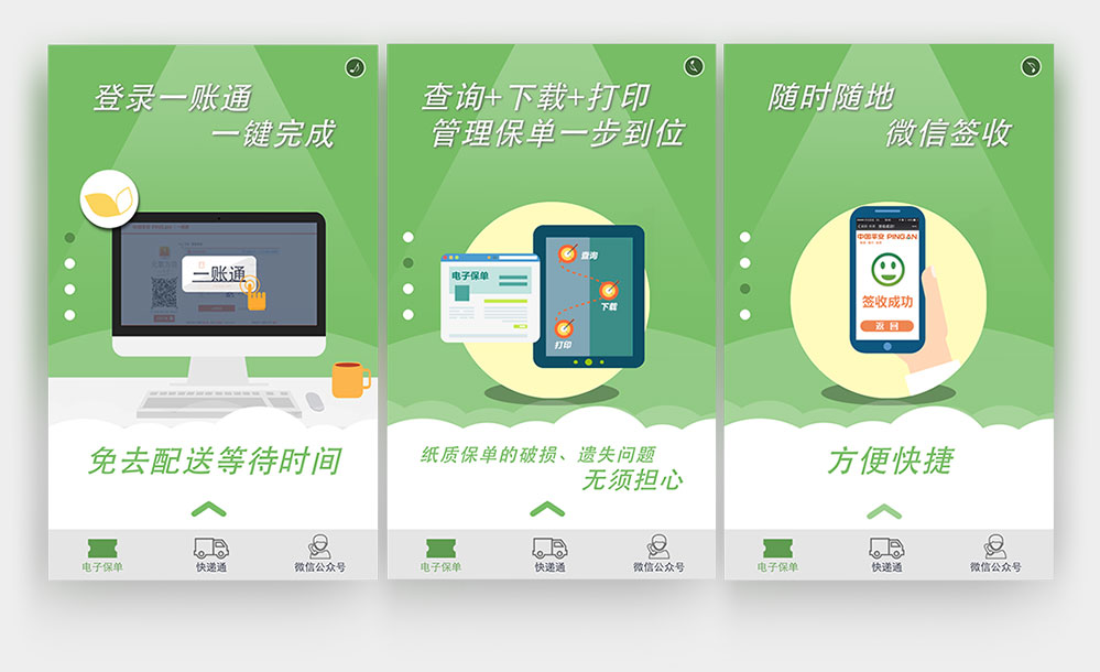 平安直通客服是平安直通保險公眾賬號內,介紹平安直通客服的H5手機端頁面。邁若從項目人群及瀏覽習慣出發,以輕松的卡通形象配合幽默風趣的文字,讓瀏覽者快速、便捷的了解平安直通客服的功能及介紹。