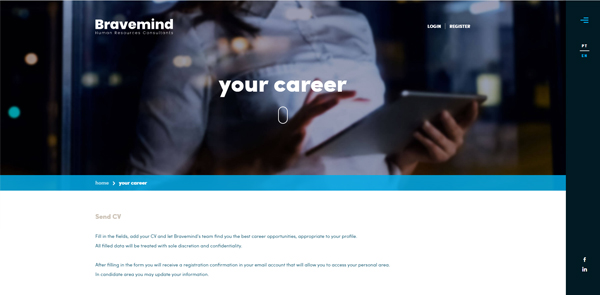 Bravemind于2006年在里斯本成立,旨在通過(guò)建立雙贏的關(guān)系提供差異化??的人力資源咨詢服務(wù)。公司網(wǎng)站整體色調(diào)采用淺藍(lán)色和設(shè)計(jì)元素搭配,既體現(xiàn)突出了公司的專業(yè)性有表現(xiàn)了公司的年輕、充滿活力和靈活的特點(diǎn)。