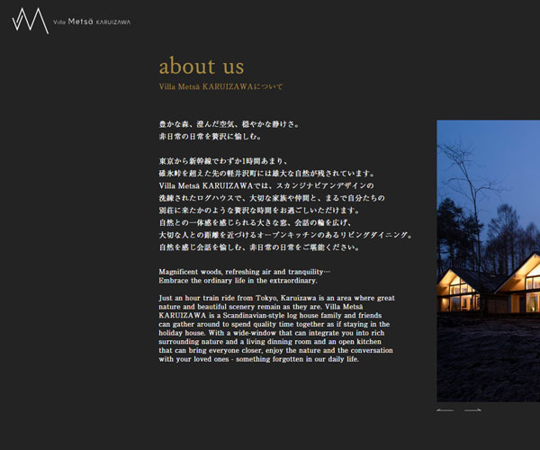 Metsa為旅行者提供舒適的度假服務,網站的建設深沉低調,傳統的線上網站外加獨特的