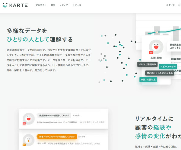 Karte.io是一家處理多元化數據的公司,網站的建設通過不同顏色的使用來體現公司