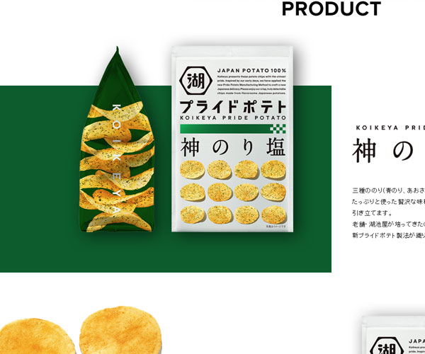 Koikeya制作美味的餅干,網(wǎng)站的建設(shè)風(fēng)格獨(dú)特,精美的圖片,特別的圖文排版方式讓網(wǎng)站