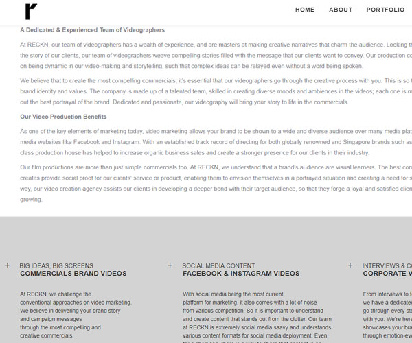 Recknstudios制作精美的數字影像,官網通過文字與圖片視頻的側重點不同形成對比